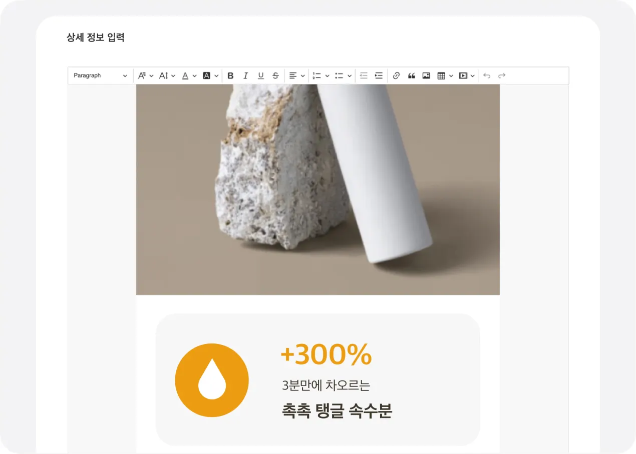상품의 상세 정보를 이미지와 텍스트로 자유롭게 입력할 수 있어요!