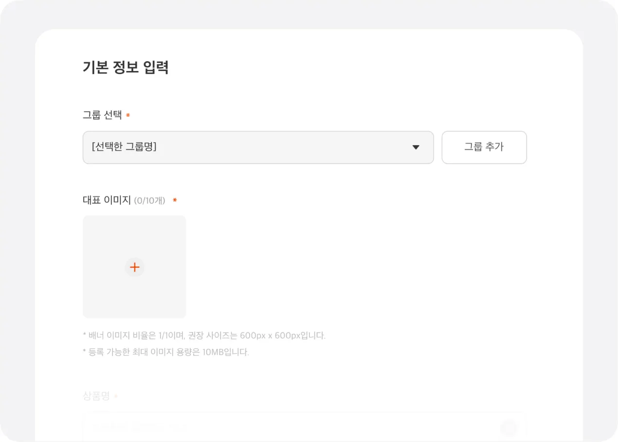 상품의 [이미지, 상품명, 일정, 카테고리, 제조일자, 유통기한, 교환·환불 정책, 반품 주소]를 입력하면 판매를 위한 기본 세팅이 완료돼요!