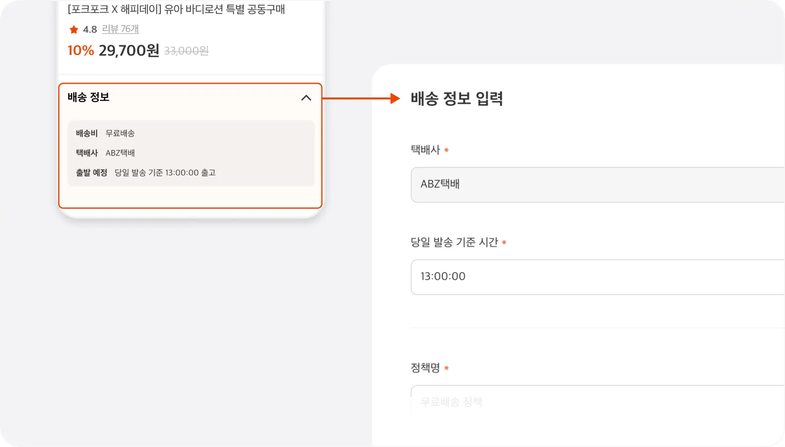 정책명: 배송 관련 정책의 이름을 입력해 주세요!