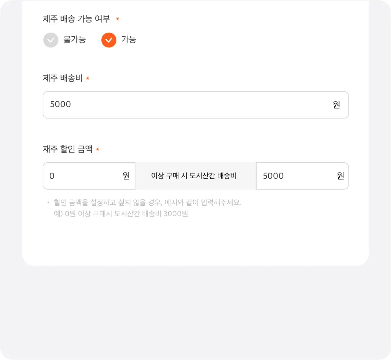 제주 배송 가능 여부: 제주 지역 배송이 가능한지 여부를 설정해 주세요!