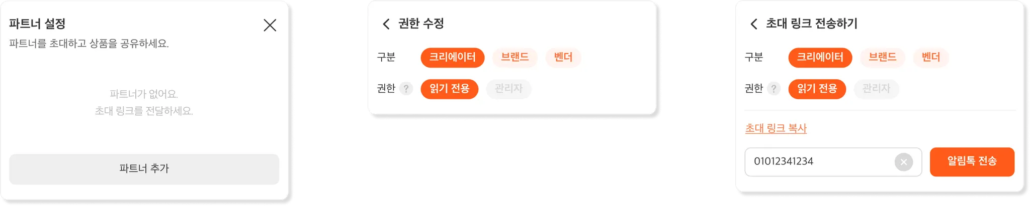 판매 상품별 파트너를 추가해, 실시간으로 정보를 공유할 수 있습니다.